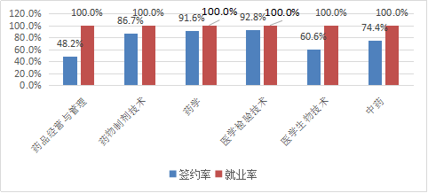 藥學(xué)與醫(yī)學(xué)檢驗技術(shù)系各專業(yè)簽約率、就業(yè)率: