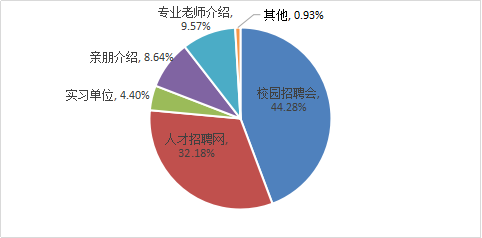 44.28%的學(xué)生表示通過校園招聘會找到心儀的工作;32.18%的學(xué)生通過人才招聘網(wǎng)站選擇工作。通過問卷調(diào)查結(jié)果顯示,學(xué)校校園招聘會針對性強(qiáng),成為畢業(yè)生求職的首要途徑。