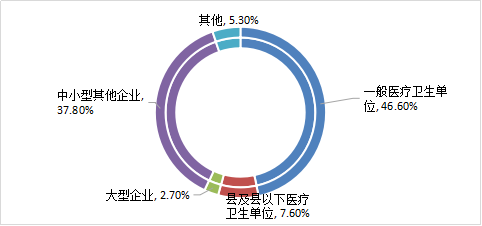 2017屆畢業(yè)生整體去向中,1150名學(xué)生選擇進(jìn)入一般醫(yī)療衛(wèi)生單位就業(yè),占畢業(yè)生總數(shù)的46.6%,縣及縣以下醫(yī)療衛(wèi)生單位188人,66人在醫(yī)學(xué)相關(guān)大型企業(yè)工作,934人在中小型其他企業(yè)工作,占畢業(yè)生總數(shù)的37.8%。單位性質(zhì)分布中一般醫(yī)療衛(wèi)生事業(yè)單位所占比例較去年下降了34.1%,更多的學(xué)生選擇進(jìn)入企業(yè)工作,就業(yè)單位性質(zhì)分布更加多樣化。
