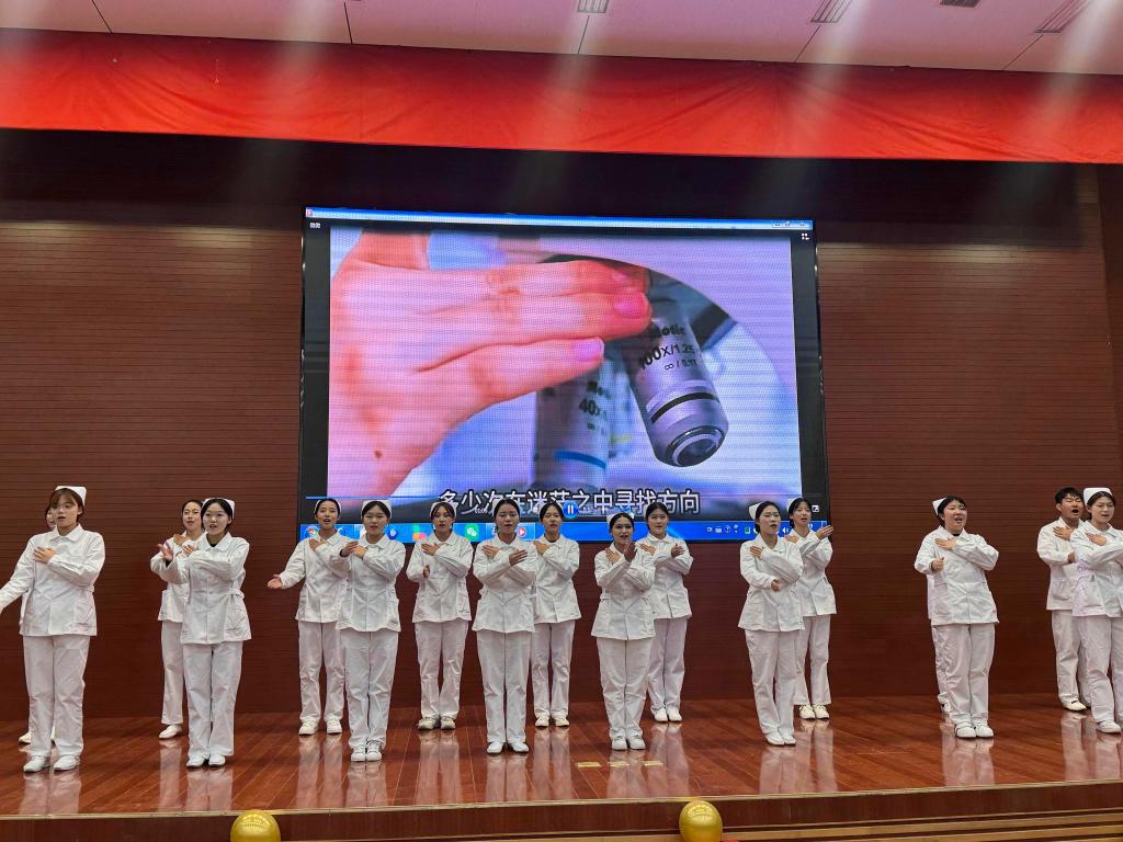 隨著朗誦環(huán)節(jié)的結(jié)束,歌曲演唱《微微》溫柔登場,細膩的旋律與真摯的歌詞,傳遞出護理工作中“每一份微小力量都能匯聚成光”的信念,治愈人心。隨之而來的歌伴舞《我們都是追夢人》則畫風一變,同學們以活力四射的舞姿、嘹亮動聽的歌聲,展現(xiàn)了護理學子昂揚向上、奮勇追夢的青春風貌,將現(xiàn)場氛圍推向高潮,彰顯了新時代護理青年既傳承初心又勇于創(chuàng)新的精神特質(zhì)。