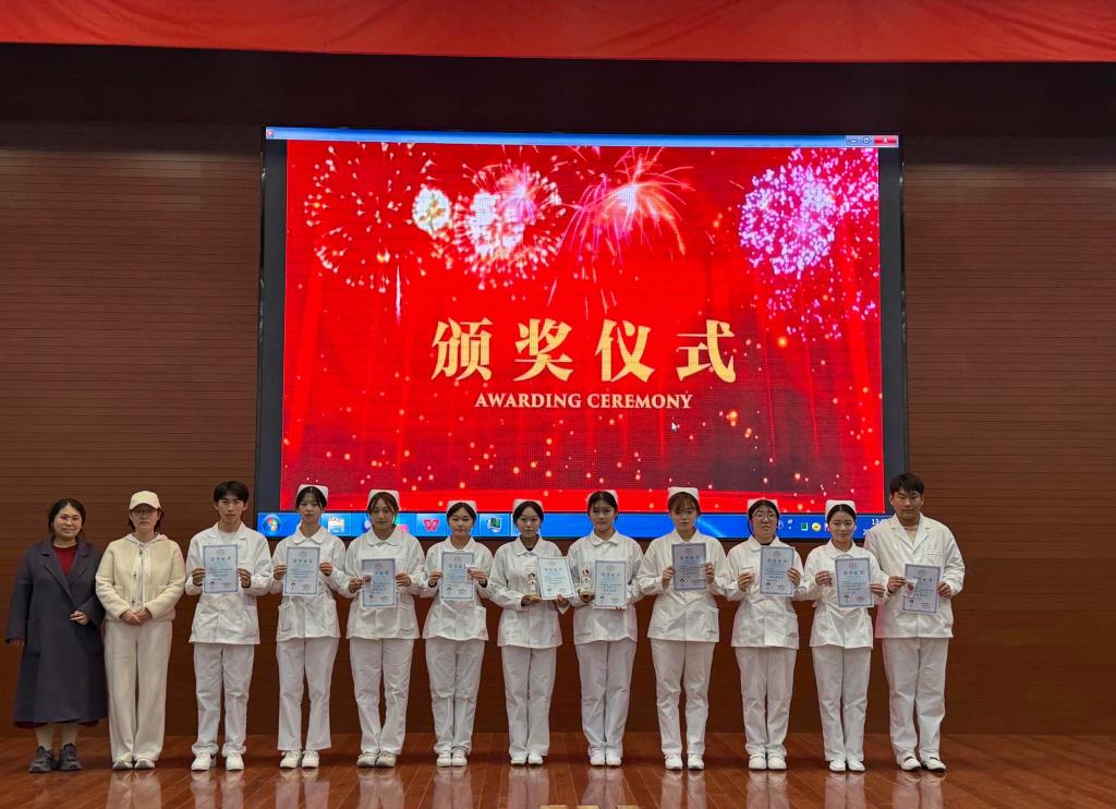 匯演尾聲的頒獎儀式簡潔而莊重。經(jīng)過領(lǐng)導與老師們的專業(yè)評審、綜合打分,最終評選出演講比賽、繪畫比賽、心得體會評選中的獲獎同學,并依次為他們頒發(fā)榮譽證書和獎品,表彰其在系列活動中的優(yōu)異表現(xiàn)。閃光燈下,獲獎同學手持證書,臉上洋溢著自豪與堅定,這份榮譽不僅是對他們個人努力的肯定,更是對全體護理學子踐行提燈精神、深耕專業(yè)學習的激勵與期許。