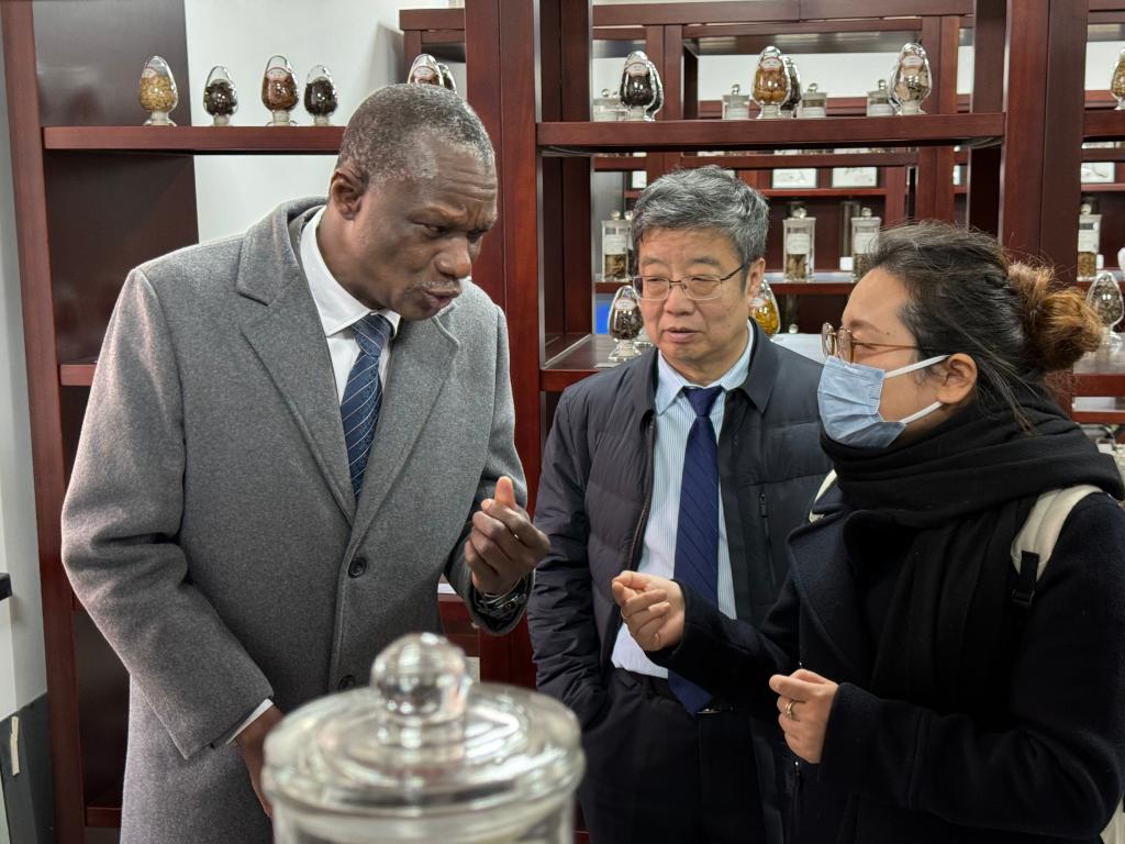 2日上午,大使一行到訪馬里魯班工坊合作企業(yè)——益德成聞藥莊,了解企業(yè)服務(wù)魯班工坊及中醫(yī)藥途徑。
